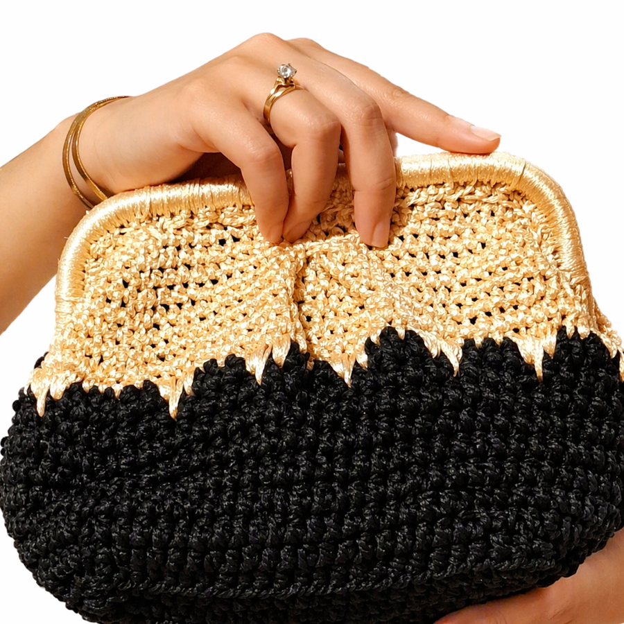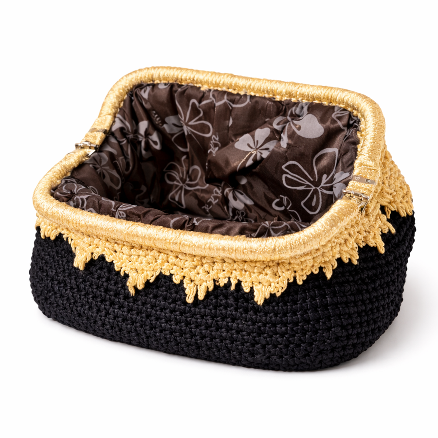 الهيكل: إطار معدني (فريم حديد) مقاس 18 سم، يضمن سهولة الاستخدام ويحافظ على ثبات شكل الحقيبة الراقي.